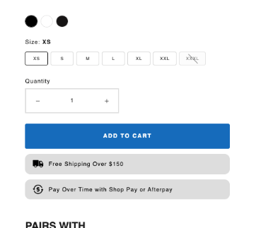 Additional value props, when added right underneath the add-to-cart button, can reduce cart hesitancy and result in more confident purchases.